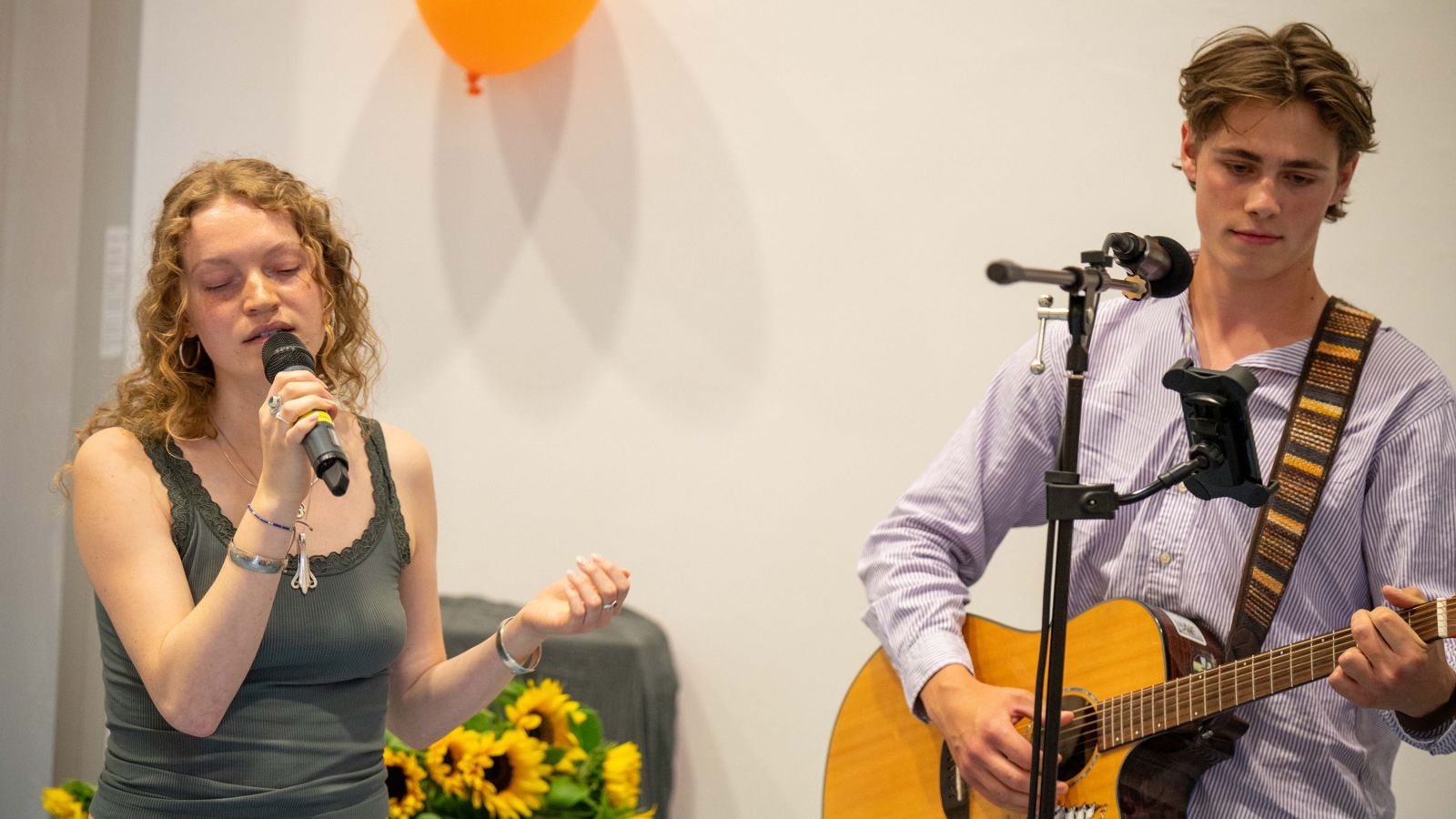 Zwischen den Vorträgen und Redebeiträgen lauschten die Anwesenden einer Musikalischen Reise: Annika Werner, Merle Lilje, und klara Jacobsen begannen mit „A million dreams“ aus dem Musical „The Greatest Showman“. Anschließend sangen Lene Perkams und Victor Abeln mit Gitarrenbegleitung „Shallow“ von Lady Gaga und Bradley Cooper. Abgerundet hat das musikalische Programm Tim Eggers mit „All of Me“ von Seymour Simons und Gerald Marks.