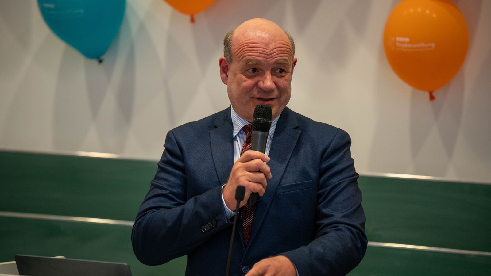 Finja Schubert und Tobias Thumm führten als Moderationsteam die anwesenden Gäste durch den Abend. Den Auftakt des Jubiläumsabends hatte der ehemalige Referent Herr Dr. Palauneck, der den weiten Weg aus Bonn auf sich genommen hatte und mit einer geschichtlichen Perspektive auf die 100 Jahre der Studienstiftung begann. Anschließend ehrte uns die Vizepräsidentin der CAU, Frau Professorin Cleophas, mit einem Beitrag, in dem Sie die Kontinuität der Studienstiftung unterstrich.